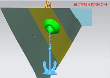 經(jīng)過(guò)與國(guó)內(nèi)行業(yè)權(quán)威設(shè)計(jì)院的合作過(guò),并將該技術(shù)應(yīng)用于船舶建造中,對(duì)錨鏈筒、錨臺(tái)、錨唇、錨穴、錨、錨鏈、錨機(jī)、止鏈器、導(dǎo)鏈滾輪、船體等進(jìn)行三維設(shè)計(jì)和自動(dòng)建模,實(shí)現(xiàn)了三維錨系計(jì),保證了錨系設(shè)計(jì)中空間位置定位的準(zhǔn)確性,并通過(guò)三維軟件導(dǎo)出二維CAD圖紙,扭轉(zhuǎn)了一直以來(lái)二維圖紙與船廠(chǎng)錨系施工脫節(jié)的局面,極大提高了錨系設(shè)計(jì)的效率。除此之外,利用軟件的后期的仿真功能,模擬并預(yù)報(bào)收錨過(guò)程的動(dòng)態(tài)效果并給出調(diào)整方案。