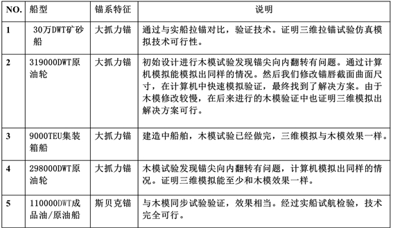 錨系三維設(shè)計(jì)能力和拉錨虛擬試驗(yàn)仿真技術(shù),經(jīng)過各類型船舶實(shí)船驗(yàn)證,已經(jīng)可以達(dá)到取消錨木模試驗(yàn),并可以顯著提高設(shè)計(jì)質(zhì)量、速度、和節(jié)省成本的目的。